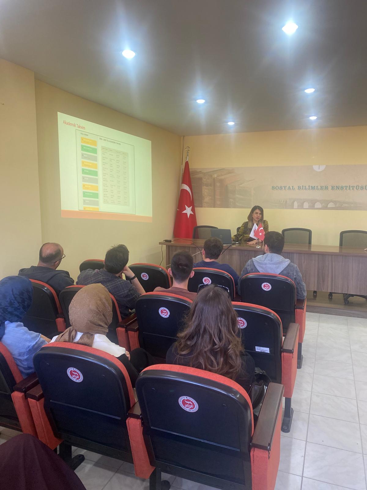 Enstitü Müdürümüz Prof. Dr. Zübeyde Akın Polat'ın sunumuyla gerçekleşen programda; yüksek lisans ve doktora eğitiminin yasal çerçevesi, akademik sorumluluklar, etik ilkeler ve öğrenci-danışman ilişkilerinde dikkat edilmesi gereken konular detaylı bir şekilde ele alınmıştır.